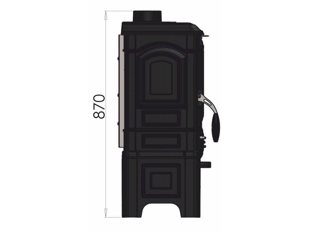 Rozměry dvířek topeniště (š x v): 225 x 320 mm